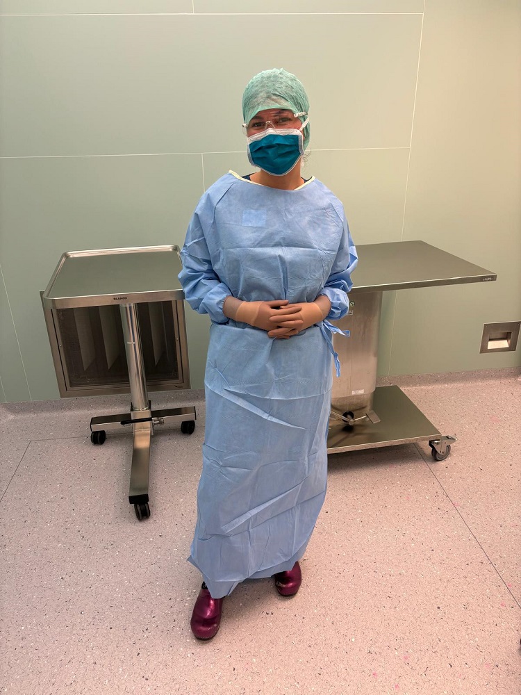 Tijdens de operatie draagt iedereen die “aan de operatietafel” staat een speciale, steriele jas en steriele handschoenen. Het dragen van deze kleding is essentieel om het risico op infecties bij de patiënt te minimaliseren en een steriele omgeving te behouden. Uiteraard biedt deze kleding ook bescherming voor het personeel.